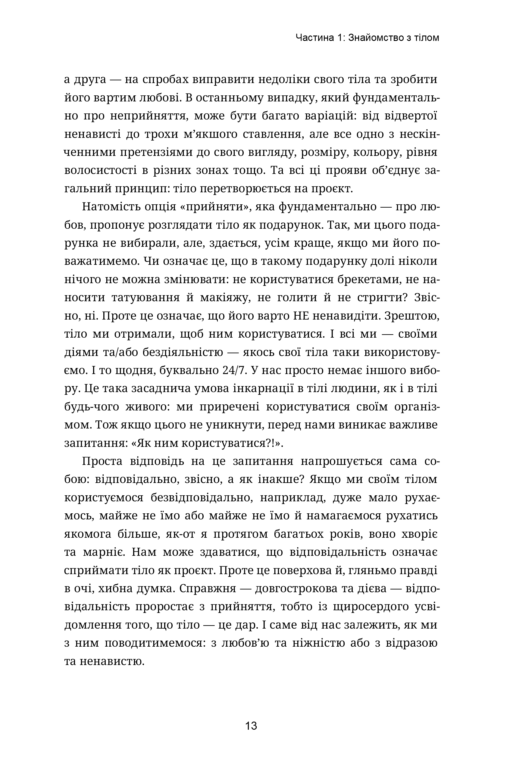 Книга «Інструкція до тіла: ніжний метод» — для всіх, у кого є тіло та хто хоче з ним добріших стосунків. Західні та східні підходи сплелися разом, щоб пояснити, що відбувається з нами за різних обставин. Як на тіло впливає стрес, цикл, рух, менопауза, відсутність та наявність відпочинку.