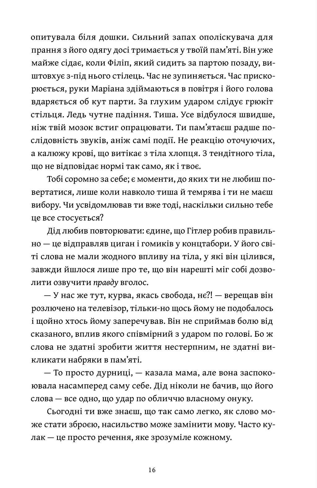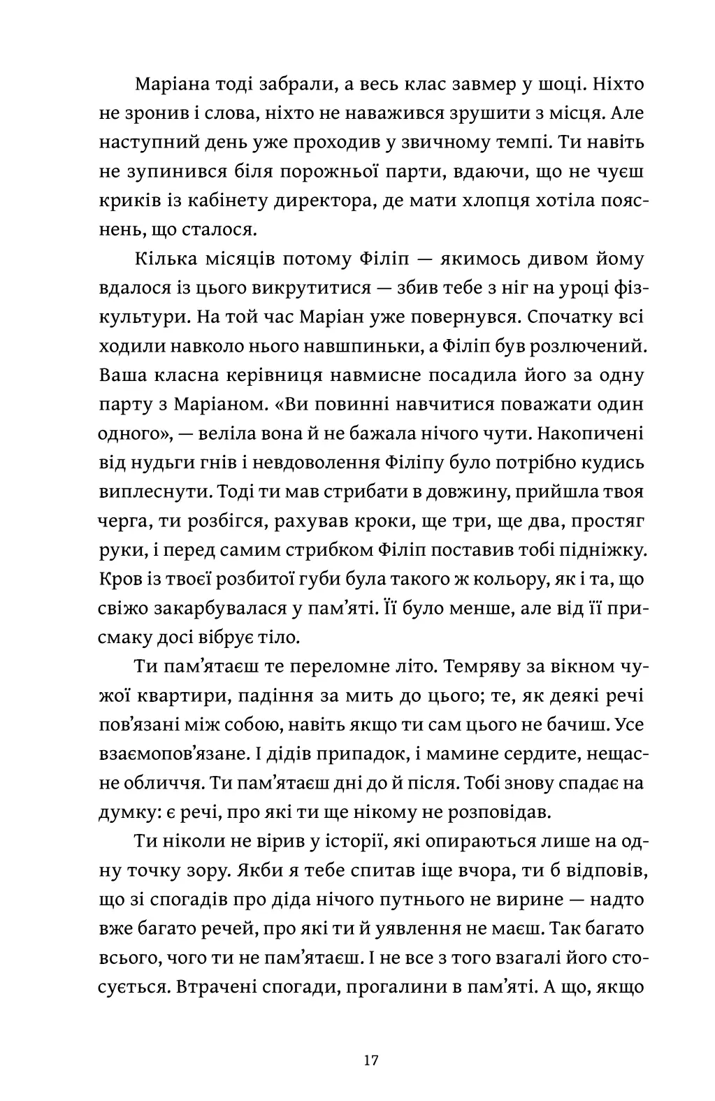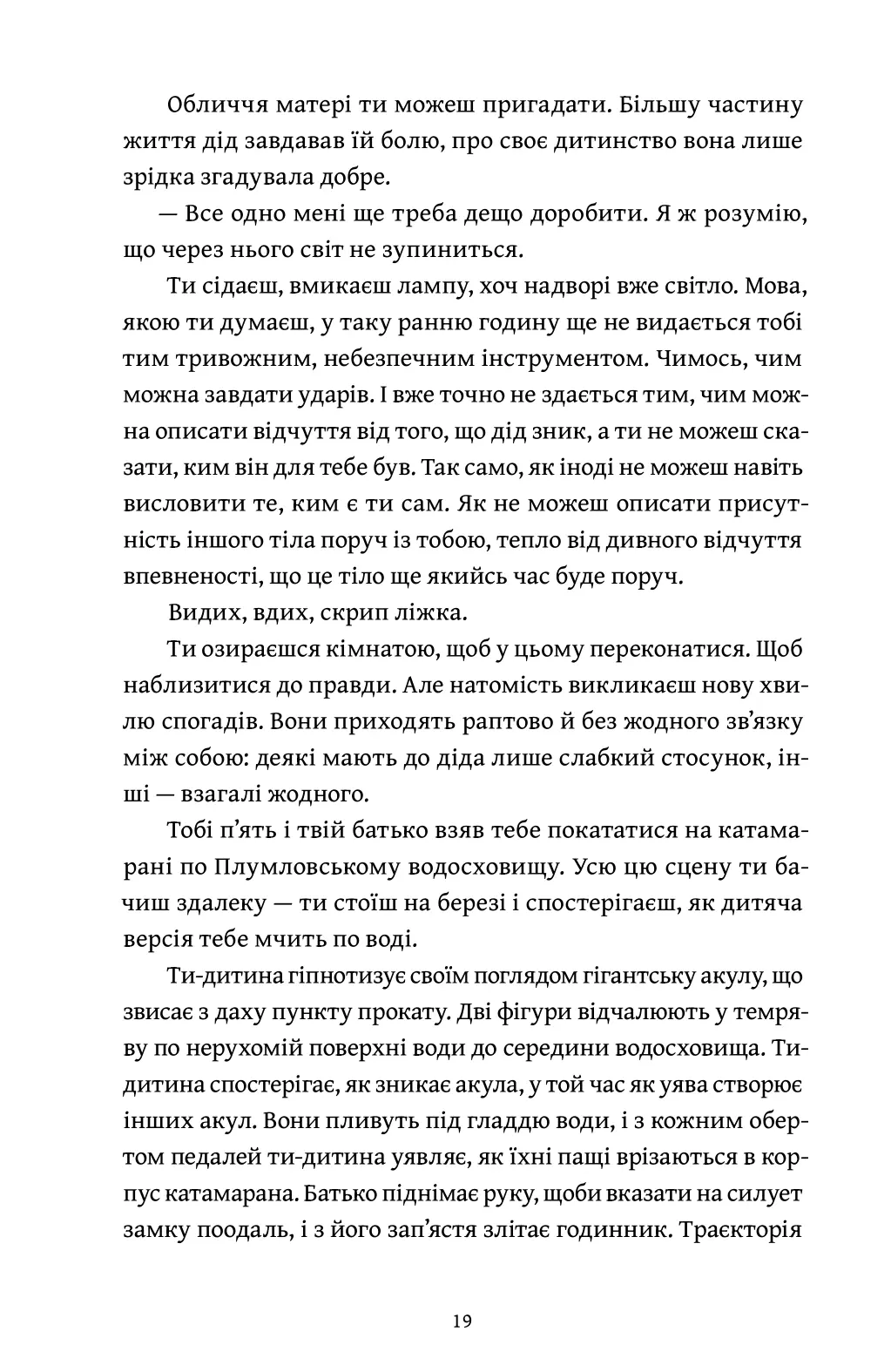 Зі спогадів виринає світ, що карає за інакшість. Герой буквально розкладає власну пам’ять — дістає спогади про матір, батька й дідуся, про цькування, алкоголізм і прийняття іншої сексуальної орієнтації. Розбирає на окремі частини не лише власні спогади, а й своєрідну колективну пам’ять усієї родини.